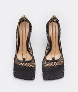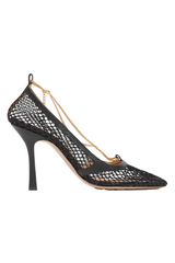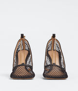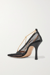 This pair of Bottega Veneta heels is made from mesh and has a sculptural square toe. They're threaded with a detachable anklet-style gold chain.
