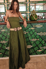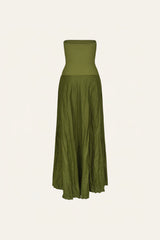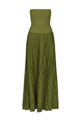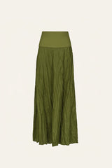 A classic Johanna Ortiz piece, now available in Green. Designed for versatile styling, it can be worn as an ankle-length skirt or dress, offering effortless elegance with its ribbed texture and soft linen blend.