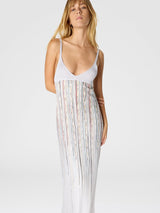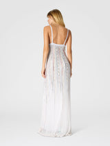 Perfect for special occasions, this long sleeveless women’s dress is crafted from flame-effect viscose lamé blend with ribbed workmanship. The structure of the fabric enhances the silhouette, creating a refined play of light and movement that catches the eye.
