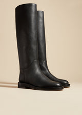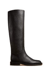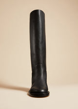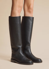 A streamlined riding boot refined by Italian craftsmanship. With tonal topstitching and the hint of a stacked heel. Slips on.