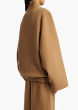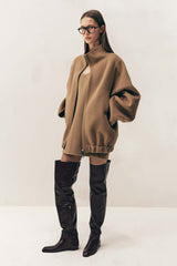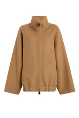 Designed for an oversized fit, this jacket has been crafted from double faced wool. It has a funnel collar, exposed silver zipper and an elasticised hem.