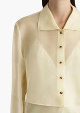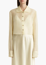 An outerwear-inspired button-up designed for a straighter and more open fit. Shrunken cuffs and covered buttons at the placket and single-button cuffs.