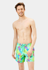 The Vilebrequin Lizard Swimwear are crafted in the luminous shades of the Ronde des Tortues Indies printed Moorea men's swimsuit. The timeless 70s style has a tipped drawstring detail and an elasticated waistband. Made of recycled polyamide, it has three pockets, including a rear flap pocket.