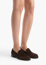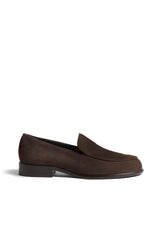 A menswear classic refined by a feminine touch and sublime details. Rounded-toe silhouette with fine-line rolled piping, goatskin lining, and the hint of a stacked heel. Signature gold staple at backstay.
