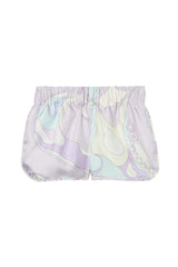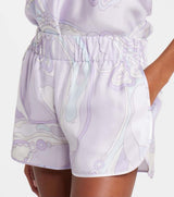 A lively nod to the 1960s and the brand's floral romanticism, these pure silk mini shorts are ideal for refined yet casual looks. The lavender Orchidee print—inspired by Eastern aesthetics and a connection with nature—harmoniously envelops the silhouette. The design is simple and comfortable thanks to the elastic waistband that emphasises its practical and feminine fit.
