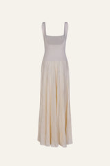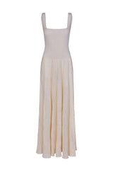 A maxi-length dress crafted from a soft linen-cotton blend with a ribbed texture. Featuring a squared neckline and a flowing silhouette, it’s designed for effortless movement and versatile styling.