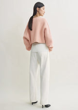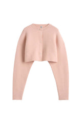 Cardigan knitted from double-faced wool to a cropped, oversized silhouette with voluminous sleeves that extend past the fingertips. Metal buttons fasten the front, creating a sculptural statement piece that ends at the ribcage. Pair with high waist trousers or a long slip dress.