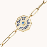 The pendant on Marlo Laz's bracelet is enamelled with 'Porte Bonheur' - the French translation of 'Lucky Charm' - and encrusted with a shimmering blue sapphire. It's handmade from 14-karat gold and strung onto a slim chain that makes it easy to stack with other styles from the brand. We think it'll be such a thoughtful gift.