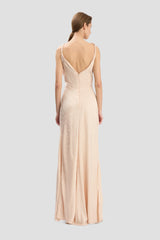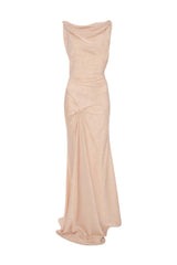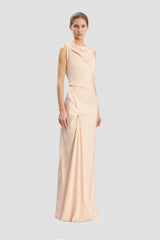 Crafted from tactile jacquard, the Posy Gown has a floor-grazing hemline and asymmetric neckline. Front pleating adds a sensuous talking point, while a V-shape back brings a sophisticated point of difference. Presented in pretty Blossom, it embodies understated elegance.