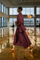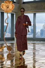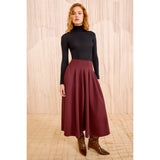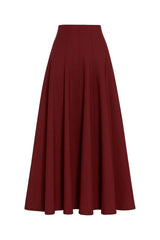 The Rea Skirt is cut from double-faced scuba that stretches for ease of movement and maintains its sculptural beauty. A rich, Mahogany red, this midi skirt features architectural pleating that elegantly coordinates with the matching Axel Top.