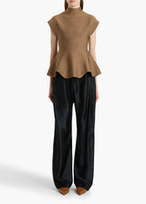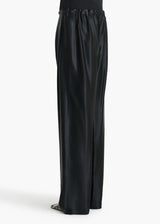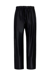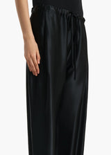 A pull-on pant that balances softness with sophistication. The relaxed, bow-leg silhouette is tailored in lightweight and luminous satin that gains enduring structure from cupro. Finished with a concealed pocket and a herringbone grosgrain tie at the elasticated waist.