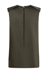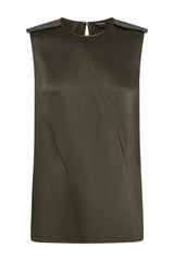 This utility inspired top from Tom Ford features diagonal panels of satin with strategically located seam slits, shoulder epaulets with button details and an open slit back. For the complete look style it back with its matching satin skirt.