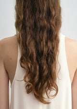 Designer’s note: “What sets this TOTEME Garderob tank dress apart is its understated scoop neckline and elongated silhouette, elevated by the rich texture of the sablé fabric and the raw, frayed hem. Wear it during the day with sandals to channel a bohemian summer mood, then add a clutch to transition seamlessly to dinner.”