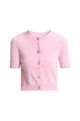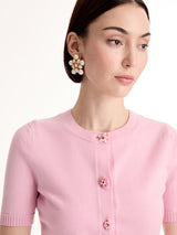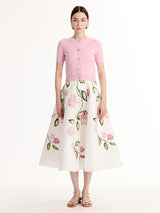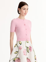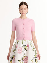 Oscar de la Renta’s collection celebrates the freshness of the season through delicate floral details, rich textures, and flowing silhouettes. Soft colours and refined craftsmanship create an elegant, light, and joyful expression of spring. Crafted of cozy wool, this fitted cardigan features short sleeves, a crewneck, and a refined rib-knit trim. For the complete look, style it with the coordinating knit top.