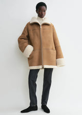 TOTEME's signature jacket is revisited in soft lamb suede with a heavyweight shearling interior to stay warm in cold climates. It has an oversized silhouette finished with a silver zipper and practical in-seam pockets. Throw it on over everyday looks