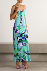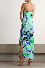 PUCCI's dress is made from semi-sheer silk crepe de chine in a simple silhouette. It's patterned with the archival 'Orchidee' print and has a generous side split to show off a flash of leg when you walk. Our stylists show how purple and gold accessories work especially well.