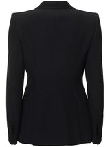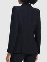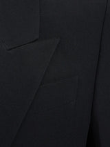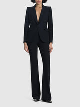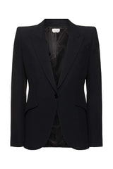 This peak shoulder jacket is a classic tailored style for the McQueen house. The jacket has a single button fastening, two side flap pockets and subtle padded shoulders.