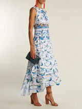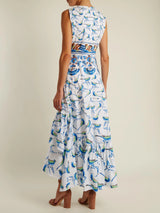 Sleeveless Bird-Print Cotton Midi Dress