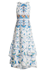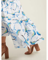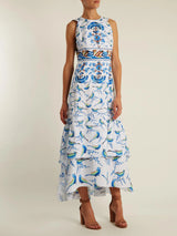 Peter Pilotto's white stretch-cotton poplin midi dress is printed with a blue, brown and green bird print that mirrors the markings on traditional Italian ceramics. It's cleverly cut with flattering shoulder straps, and flares into a tiered skirt with gathered panels to ensure beautiful movement.