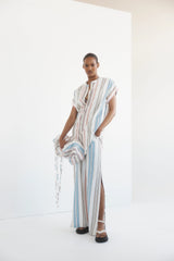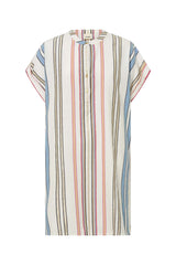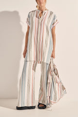 The Athena Tunic is a classic Ilio Nema silhouette. Tailored in this season's multi-colour Byron Stripe featuring gold accents it is a versatile piece to be loved and worn. This easy-to-wear tunic is both feminine yet simple with its straight fit, rolled sleeves, deep neckline and side seam pockets. Embellished with signature gold bar buttons at neckline.