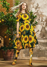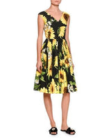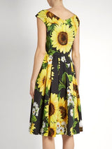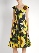 Sunflower-Print Sleeveless A-Line Dress