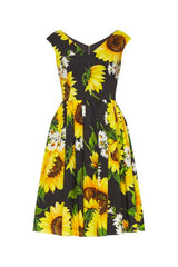 Dolce & Gabbana’s affinity with florals extends to the vibrant sunflower print and this yellow & black cotton-poplin sleeveless dress offers a typically feminine interpretation.