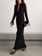 Brandon Maxwell's 'The Sylvie' gown is made from slinky stretch-jersey and has a generous keyhole at the front. It's cut for a loose fit and has split cuffs to show off a few bracelets. Match your jewellery to the gleaming hardware.